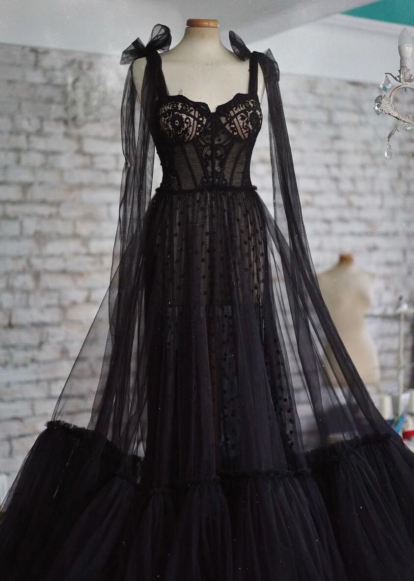 Black Polka Dot Lace Tulle Fabulous Prom Dress