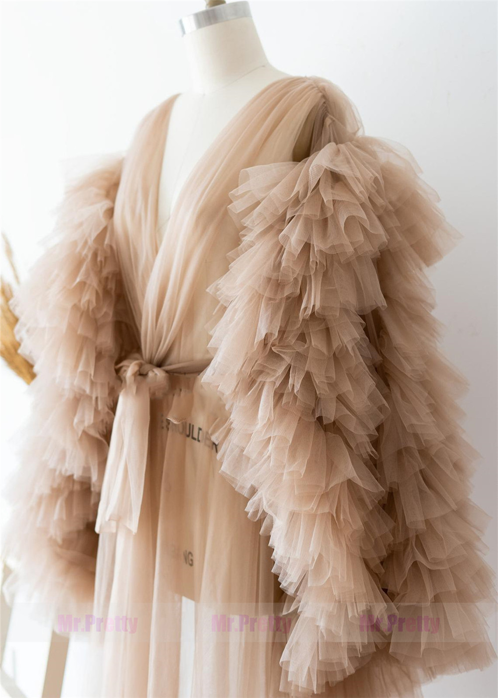 Tan Tulle Ruffle Sleeve Maternity Dress