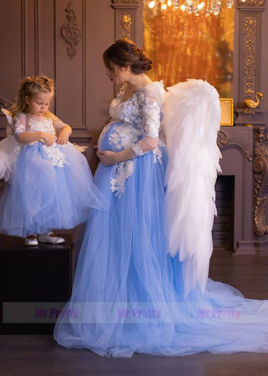 Lace Tulle Mother and Kids Dress Maternity Dress