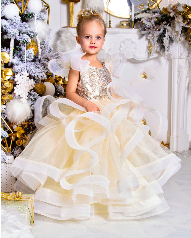 Light Champagne Lace Tulle Full Length Flower Girl Dress Pageant Dress