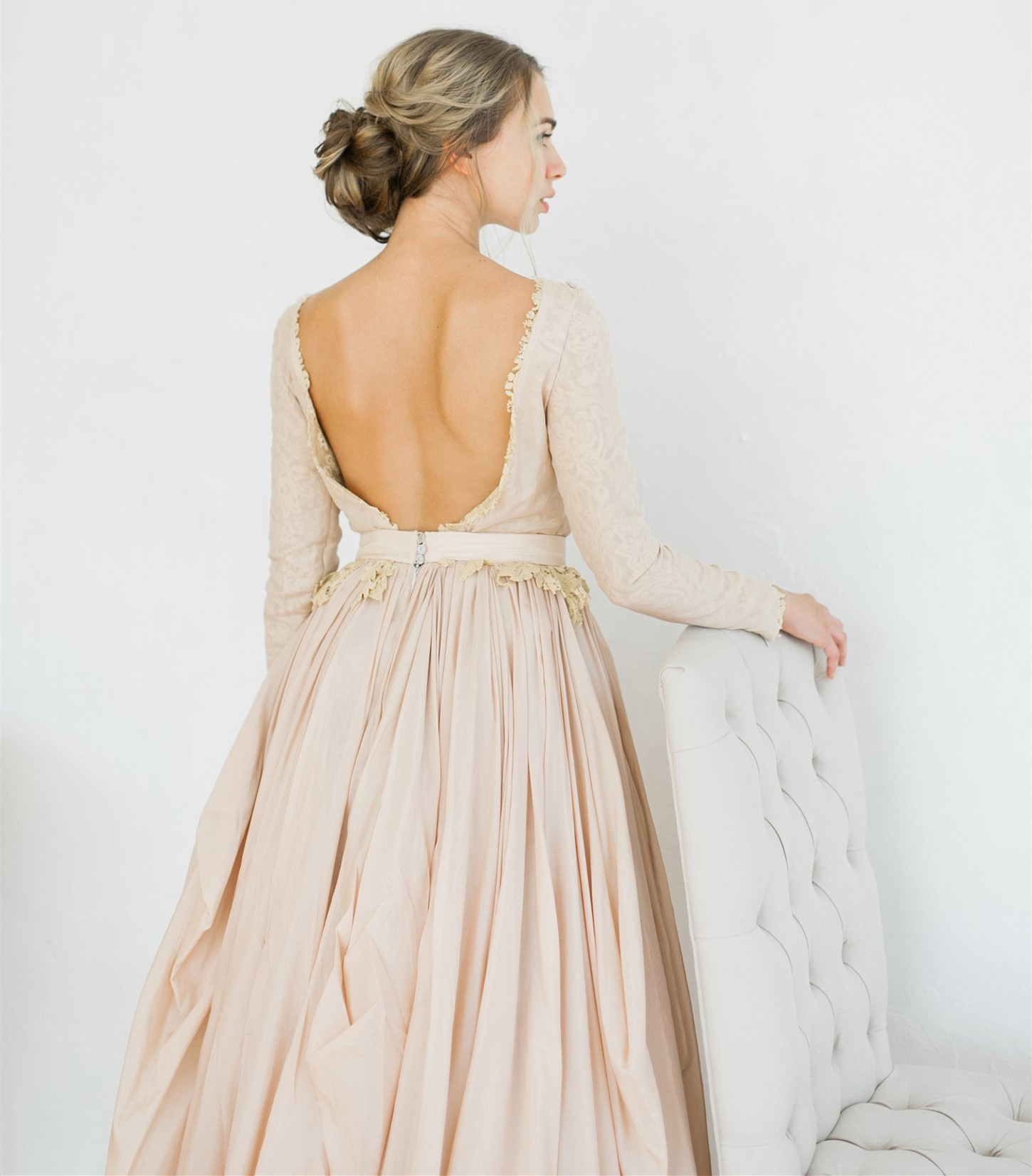 V Back Lace Chiffon Bridal Gown Wedding Dress