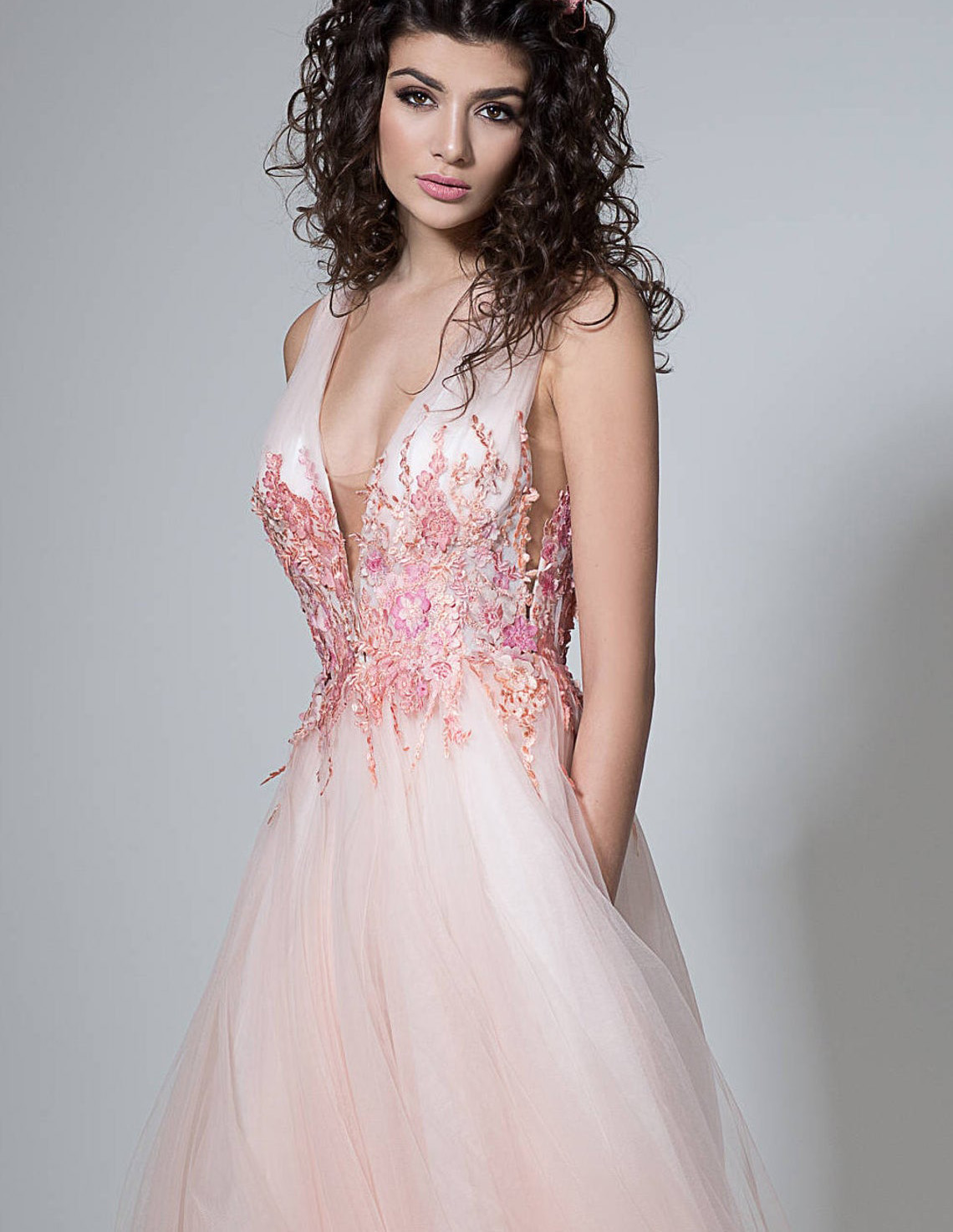 V Neck Floral Sexy Prom Dress